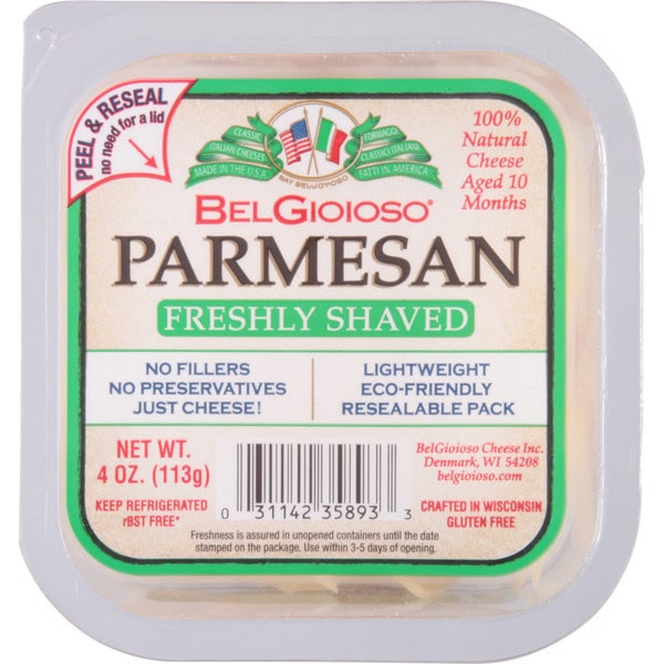 Classic Italian cheeses. Say Bel-joy-oso. Aged 10 months. No fillers, no preservatives, just cheese! rBST free (No significant difference has been found in milk from cows treated with artificial hormones).