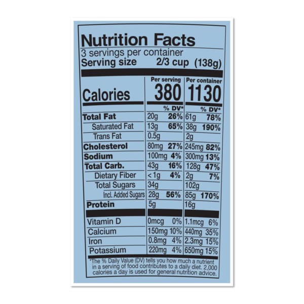 Cream, Skim Milk, Liquid Sugar (sugar, Water), Water, Wheat Flour, Sugar, Brown Sugar, Egg Yolks, Butter (cream, Salt), Expeller Pressed Soybean Oil, Eggs, Coconut Oil, Chocolate Liquor, Cocoa (processed With Alkali), Cocoa, Molasses, Guar Gum, Salt, Vanilla Extract, Natural Flavor, Cocoa Butter, Invert Sugar, Carrageenan, Milk Fat, Tapioca Flour, Soy Lecithin, Annatto Extract (for Color), Turmeric Extract (for Color), Milk