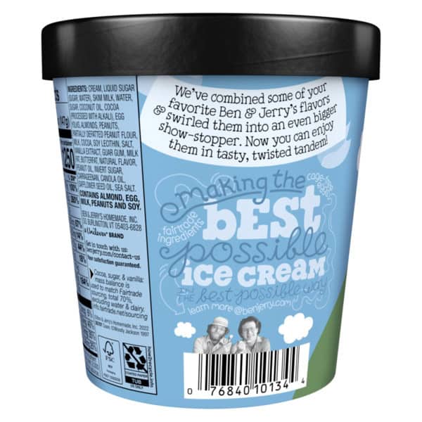 • We’ve combined some of your most favorite Ben & Jerry’s flavors & swirled them into even bigger show-stoppers. Now you can enjoy the tasty and twisted tandem inside this Ben & Jerry’s ice cream pint