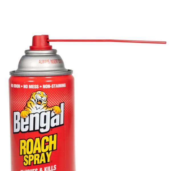 No odor. No mess. Non-staining. Flushes & kills. Kills roaches as they hatch. The dry powerful spray penetrates deep into cracks and crevices to drive roaches out to die. Kills insects you see and those you don’t. Powerful flushing action drives insects out of hiding and kills them. Innovative dry spray – no odor – no mess – no roaches. Dry spray carries the killing ingredient to the roaches. Guaranteed to work or your money back. Guarantee: if you are not completely satisfied with this Bengal product, call 225-753-1313 weekdays 8:30 am – 4:00 pm Central Time. www.bengal.com.