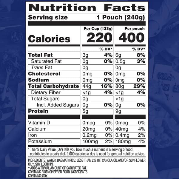 Water, Basmati Rice, Less Than 2% Of: Canola Oil And/or Sunflower Oil†, Soy Lecithin, †Adds A Trivial Amount Of Saturated Fat