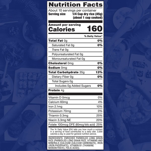 Enriched Parboiled Long Grain Rice (parboiled Long Grain Rice, Vitamins And Minerals [calcium (calcium Carbonate), Iron (iron Phosphate), Vitamin B1 (thiamine Mononitrate), Folic Acid])