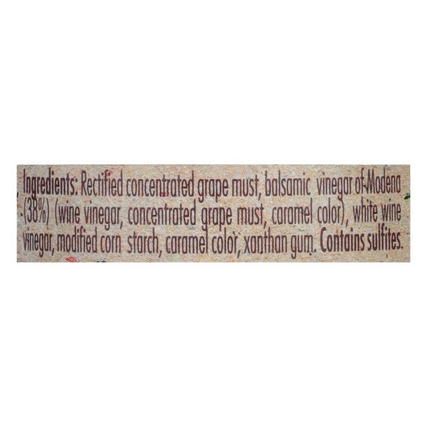 Cooked Grape Must, Balsamic Vinegar Of Modena (38%)(wine Vinegar, Concentrated Grape Must, Cooked Grape Must, Caramel Color), Wine Vinegar, Caramel Color, Modified Corn Starch, Xanthan Gum.