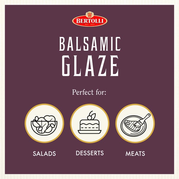 • Bertolli Balsamic Glaze with Balsamic Vinegar of Modena gives the finishing touch to your meals