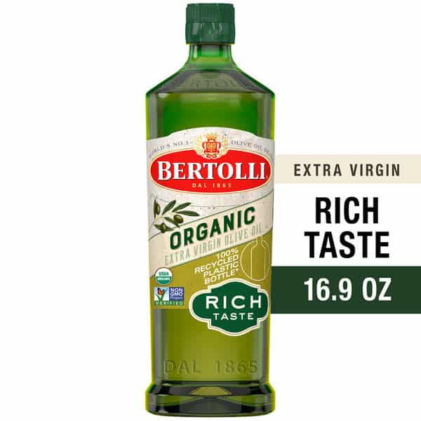 • One 16.9 fl oz bottle of Bertolli USDA and Non-GMO Certified Organic Extra Virgin Olive Oil, Rich Taste