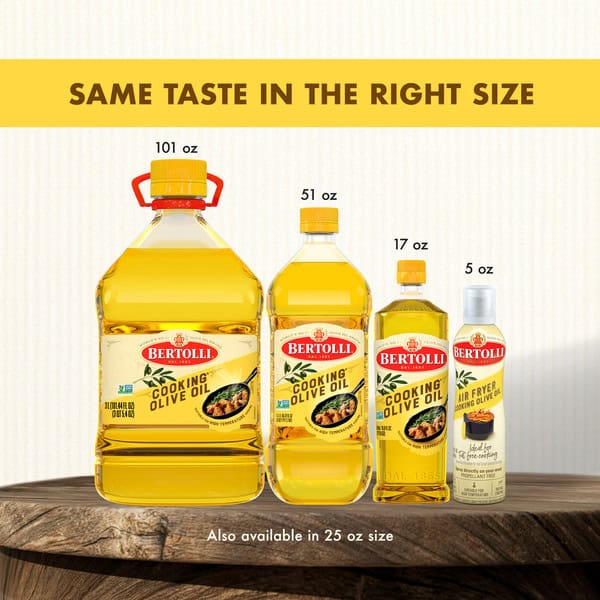 • One 50.7 fl oz bulk refill size bottle of Bertolli Non-GMO Certified Cooking Olive Oil