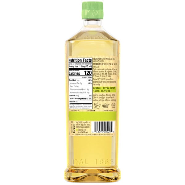 • One 16.9 fl oz bottle of Bertolli Non-GMO Certified Olive Oil, Extra Light Taste