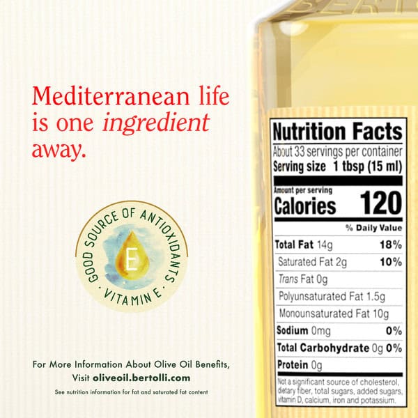 • The Good Living Recipe: As the world’s leading olive oil brand, Bertolli’s olive oil varieties are beloved by chefs and home cooks alike for their quality and versatility