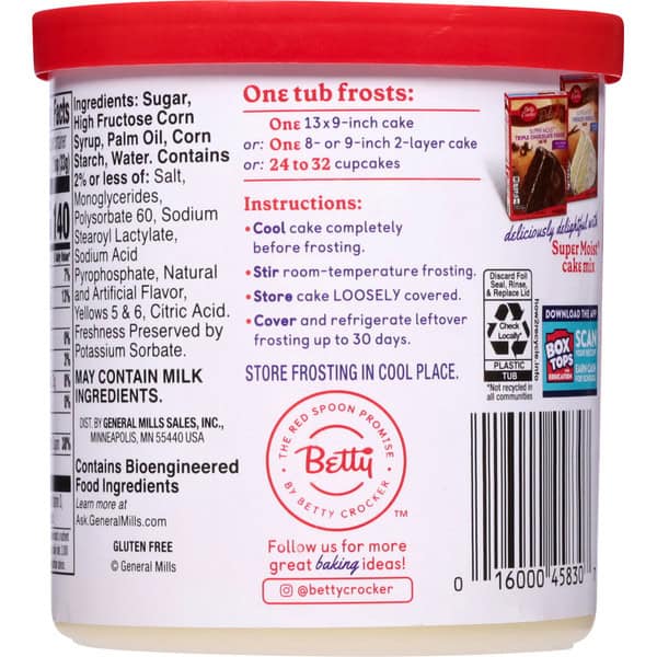 • BOX TOPS FOR EDUCATION PARTICIPATING PRODUCT: Give back to schools with Betty Crocker; Download the Box Tops App to learn more & start earning cash for your school or a school in need
