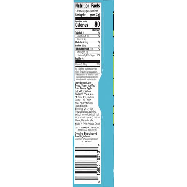 Corn Syrup, Sugar, Modified Corn Starch, Apple Juice Concentrate, Contains 2 % Or Less Of: Citric Acid, Sodium Citrate, Fruit Pectin, Malic Acid, Vitamin C (ascorbic Acid), Sunflower Oil†, Color (vegetable Juice, Spirulina Extract, Turmeric Extract, Fruit Juice, Annatto Extract), Natural Flavor, Carnauba Wax, †adds A Trivial Amount Of Fat