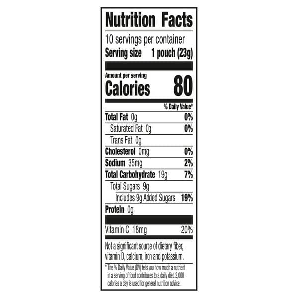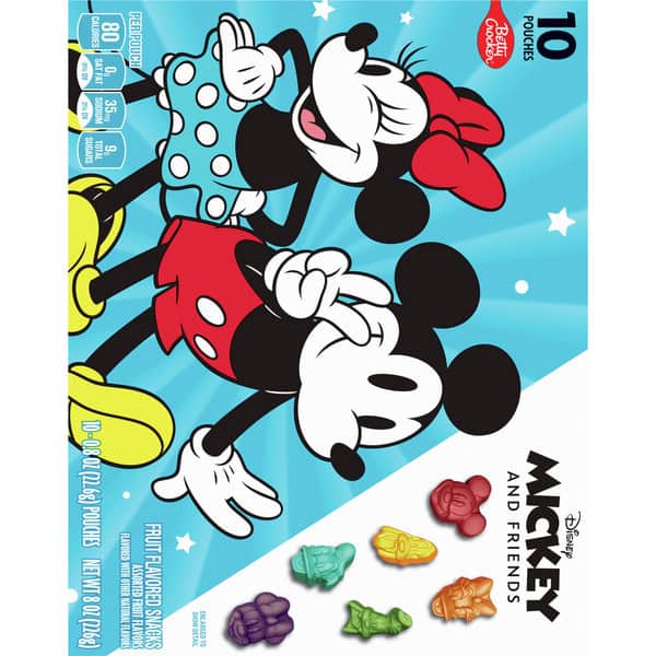 Mickey & Friends Fruit Flavored Snacks feature tasty treats shaped like your favorite Mickey & Friends characters for maximum fun. Packaged for on-the-go convenience and portability, these fruit flavored snacks are a treat the whole family can enjoy. These packaged snack bags are the perfect treat to include in a packed school lunch box or keep on hand for a moments notice. You’ve finally found the perfect after-school snack that’s a win for you and your kids. Mickey & Friends Fruit Flavored Snacks are the perfect addition to your pantry and grocery routine and a snack every member of the family will love. These tasty treats are made without gluten or gelatin. Contains 10 fruit flavored snack pouches in total.