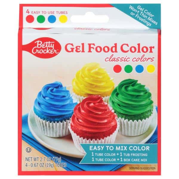 Directions for Coloring Dough, Icing, Frosting, and White Cake Batter: Add small amount of selected gel food color to dough, icing, frosting, or white cake batter. Mix until color is well blended. Continue to add gel food color until preferred color is achieved. Bake dough or batter after desired color is achieved. Tip: To achieve the perfect color, simply add 1 tube of Betty Crocker gel food color to 1 tub of Betty Crocker white frosting or 1 box of Betty Crocker white cake mix.