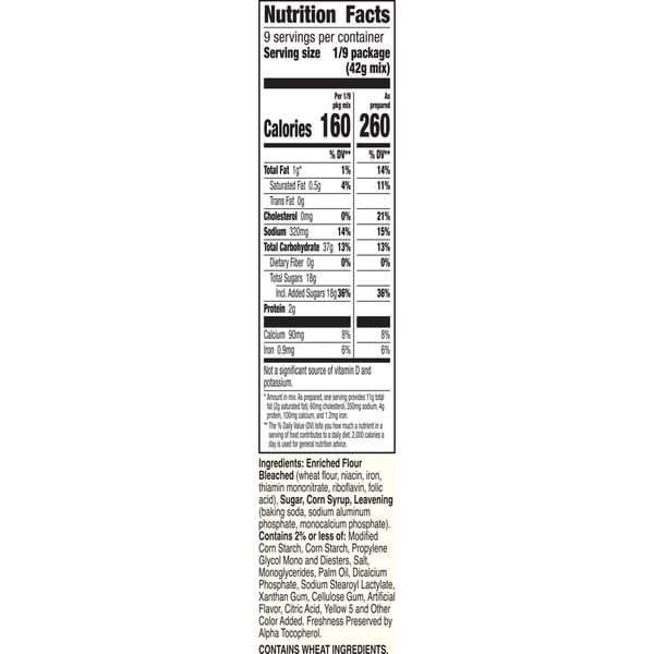 Enriched Flour Bleached (wheat Flour, Niacin, Iron, Thiamin Mononitrate, Riboflavin, Folic Acid), Sugar, Corn Syrup, Leavening (baking Soda, Sodium Aluminum Phosphate, Monocalcium Phosphate), Contains 2% Or Less Of: Modified Corn Starch, Corn Starch, Propylene Glycol Mono And Diesters, Salt, Monoglycerides, Palm Oil, Dicalcium Phosphate, Sodium Stearoyl Lactylate, Xanthan Gum, Cellulose Gum, Artificial Flavor, Citric Acid, Yellow 5 And Other Color Added, Freshness Preserved By Alpha Tocopherol