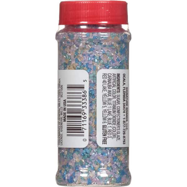 IngredientsSugar, Confectioner’s Glaze, Artificial Color, Titanium Dioxide (color), Carnauba Wax, Blue 1 Lake, Blue 1, Red 3 Red 40 Lake, Yellow 5, Yellow 6.