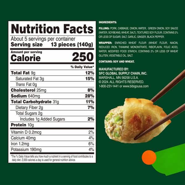 With every bite of bibigo Mini Wontons Pork & Vegetable Dumplings you’ll experience bold flavors rooted in Korean culinary traditions. Each wonton is filled with savory pork with soy sauce, garlic, ginger and black pepper added, then combined with vegetables and packed into a thin wrapper. Fully cooked and ready to enjoy after being pan-fried for 5 minutes, these delicious wontons can be enjoyed as a sharable appetizer or as part of an easy dinner. Explore Korean cuisine right at home. Just heat ’em up to make life more delicious.