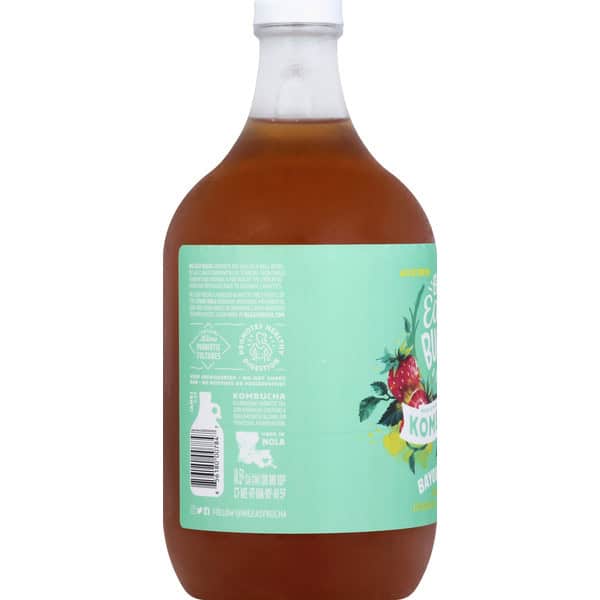 Made with organic kombucha. Infused with strawberry and honeysuckle. Big Easy Bucha supports the health & well being of gulf coast communities by sourcing from small farmers and pouring a portion of the proceeds from our beverages back to regional charities. Big Easy Bucha is powered in part by the efforts of the strive Nola program. providing meaningful jobs and living wages to individuals with barriers to employment. learn more at bigeasybucha.com. Contains live probiotic cultures. Promotes healthy digestion. Kombucha is a sparkling probiotic tea our kombucha contains a trace amount of alcohol due to natural fermentation. Nothing to hide here. Honeysuckle: These fragrant flowers offers fruity sweet tunes. Strawberry: Our berries are picked at peak season from Louisiana farms. Raw. No additives or preservatives. Instagram. Twitter. Facebook. Follow (at)bigeasybucha. Contains 2% juice. Certified vegan. vegan.org. Certified Organic by Quality Certification Service/QCS. Certified Gluten-Free. Non GMO Project verified. nongmoproject.org. Made in Nola.