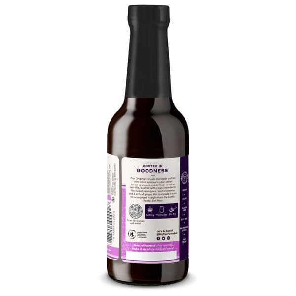 Our Teriyaki Marinade, crafted with Coco Aminos, is your secret sauce to elevate meals from so-so to TERI-iffic. Crafted with sweet raisin juice, soulful sesame, and a kick of ginger, this marinade is to be enjoyed straight from the bottle. Ready. Set. Pour.