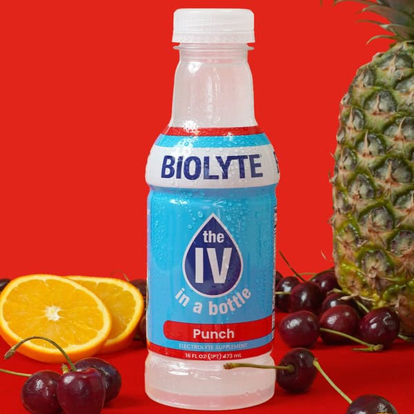 BIOLYTE, the IV in a bottle, is the only clinical hydration drink that contains the same amount of electrolytes as an IV bag. Our newest flavor, punch, is a fruity, nostalgic combination of flavors.