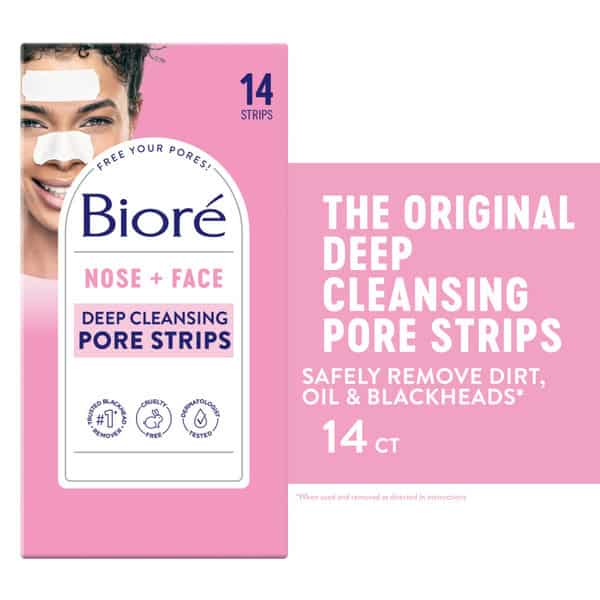 Remove blackheads and shrink the size of pores with Biore Blackhead Reducing Deep Cleansing Pore Strip. These deep cleansing nose strips target blackheads and unclog pores for healthy looking skin. Convenient and easy to use, these Pore Strips can be used 1x per week for the deepest clean. Unlike other wannabe ‘pore strips’, ONLY Biore Deep Cleansing Pore Strips use patented C-bond technology to bind to blackheads and impurities, NOT to skin. These strips are super magnetic to safely and effectively remove dirt, oil, and even stubborn blackheads. Biore Deep Cleansing Pore Strips by Kao USA leave skin feeling cleaner with visibly smaller pores after continuous use. A dermatologist-tested way to remove blackheads and purify pores. Satisfaction Guaranteed. Limitations may apply.
