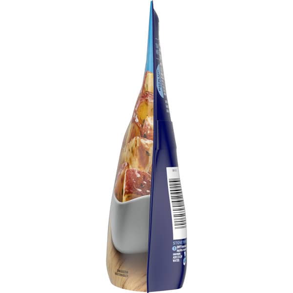 Microwave Oven: Cook only one bag at a time. 1. Place frozen, unopened bag this side up, laying flat in microwave. Do not pierce bag. For microwaves with a metal rack, remove rack. 2. Microwave on high 5 to 6 minutes. During cooking, the bag will slowly inflate. A special vent in the bag will allow the steam to escape and a whistling sound may be heard. 3. Let stand 1 minute (stand time is important for safety and quality). Carefully handle bag at corners marked with the ovals and remove from microwave with two hands. Check that food is cooked thoroughly. Hold bag over serving dish. Tear bag at notch. Pour, stir and enjoy. Microwave Cook Time: 1200 wattage; 5 minutes. 1000 wattage; 5 1/2 minutes. 800 wattage; 6 1/2 minutes. For microwave ovens less than 800 watts please use stove top instructions. Stove Top: Cook only one bag at a time. 1. Empty frozen contents of bag into a 2-quart nonstick sauce pan. Add 2 tablespoons water. 2. Cook covered over medium heat for 8 to 12 minutes or until heated through, stirring occasionally. 3. Let stand for 1 to 2 minutes (stand time is important for safety and quality). Stir well and serve. Cook thoroughly. For Food Safety & Quality Follow These Instructions Carefully: Keep frozen – do not thaw. Microwave directions developed with 1100-watt microwave ovens. Appliances vary. Adjust cooking times as needed. Food must be cooked thoroughly to 165 degree F. Read and follow these cooking directions. Lay flat when microwaving. Caution! Food will be hot!