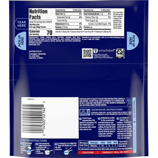 Corn, Green Bell Peppers, Onions, Red Bell Peppers, Contains Less Than 2% Of: Soybean Oil, Salt, Sugar, Dehydrated Onion, Dehydrated Garlic, Spice, Spice Extractive, Oleoresin Paprika (color).