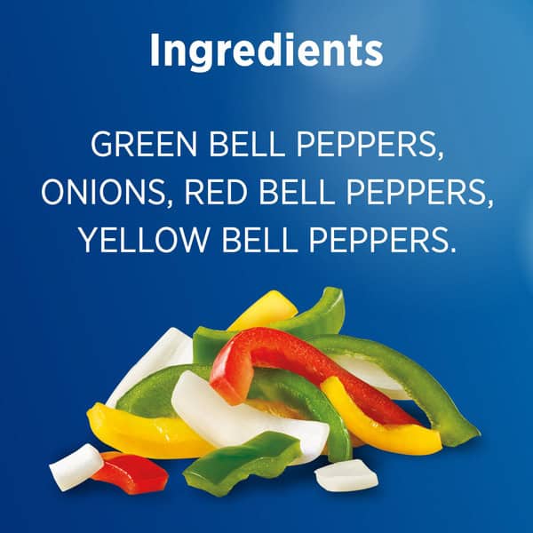 Enjoy savory stir-fried vegetables without the hassle when you have Birds Eye Pepper Stir Fry Vegetables. Birds Eye makes stir-frying vegetables easier than ever—no washing or chopping required. These stir fry veggies include sliced green, red and yellow bell peppers plus white onions. All of the frozen vegetables were specially selected and flash frozen, locking in fresh flavor and nutrients, to provide you and your family with high-quality frozen sides. This Birds Eye frozen side is made with no artificial ingredients for a delicious and convenient way to enjoy stir-fried mixed veggies without compromise. Serve the frozen mixed vegetables as a side dish or use them as a starter for your stir fry meal by adding sauce, meat and rice or noodles. Easily prepare the frozen peppers and onions by cooking them in a skillet or the microwave in 7 minutes or less. Store this 14.4 ounce bag of stir fry mix in the freezer to maintain freshness until you are ready to enjoy. It’s good to eat vegetables, so Birds Eye makes vegetables good to eat.