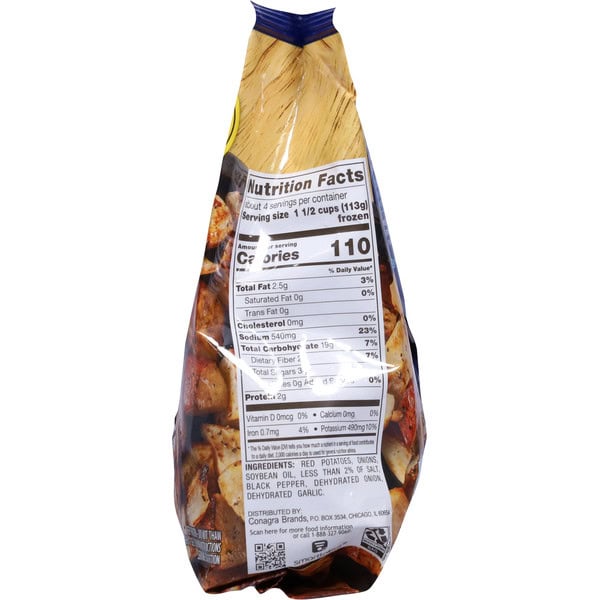 Red Potatoes, Onions, Soybean Oil, Contains Less Than 2% Of The Following: Salt, Black Pepper, Dehydrated Onion, Dehydrated Garlic.