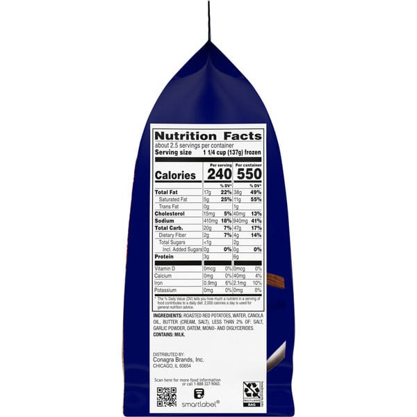 Roasted Red Potatoes, Water, Canola Oil, Butter (cream, Salt), Less Than 2% Of: Salt, Garlic Powder, Datem, Mono- And Diglycerides