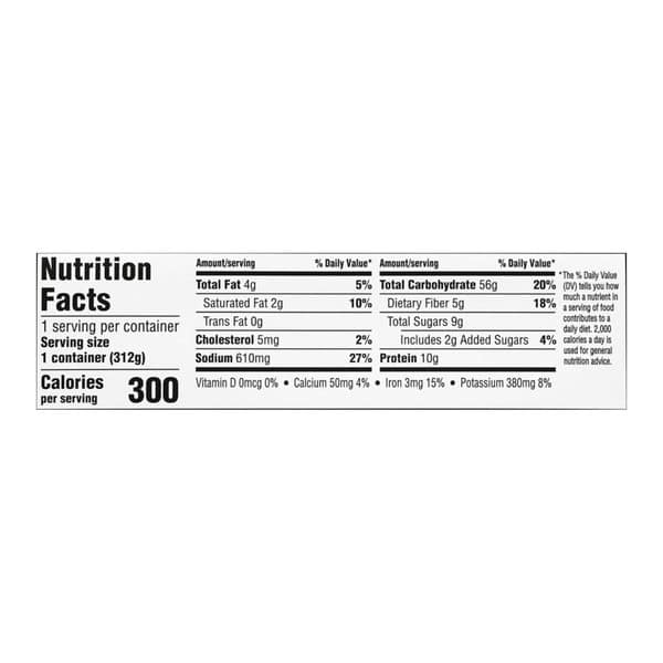 Cooked Enriched Pasta (water, Enriched Wheat Flour [durum Wheat Semolina, Niacin, Ferrous Sulfate {iron}, Thiamine Mononitrate, Riboflavin, Folic Acid]), Water, Broccoli, Carrots, Corn, Contains Less Than 2% Of: Butter (cream, Salt), Sugar, Modified Corn Starch, Salt, Dehydrated Garlic, Dehydrated Chives, Xanthan Gum, Locust Bean Gum, Natural Flavor.