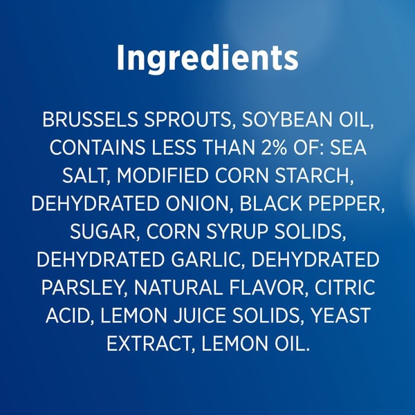 Brussels Sprouts, Soybean Oil, Contains Less Than 2% Of: Sea Salt, Onion Powder, Black Pepper, Garlic Powder, Caramelized Sugar, Monosodium Glutamate, Sugar, Dried Parsley, Citric Acid.