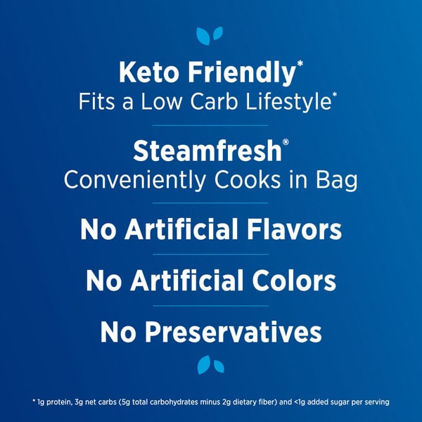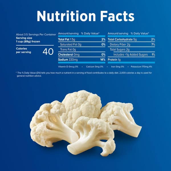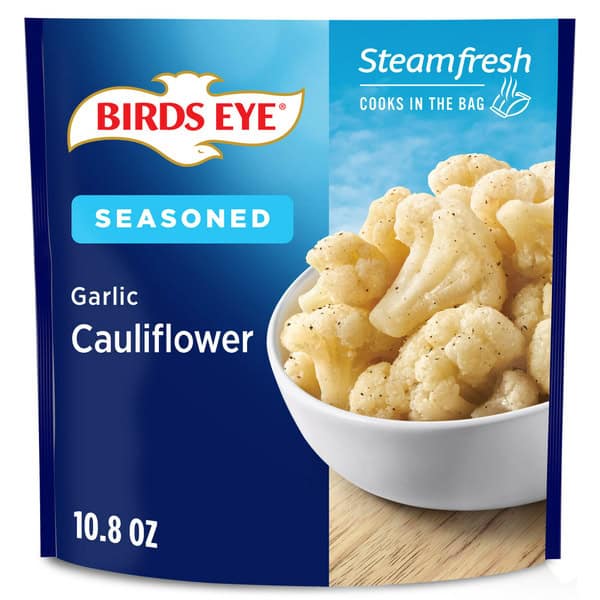 Birds Eye Steamfresh Seasoned Garlic Cauliflower frozen vegetables make it simple and easy for the whole family to enjoy their vegetables. These frozen cauliflower florets are seasoned with garlic. Birds Eye bagged cauliflower makes a tasty addition to any meal. Your family deserves the best when it comes to eating vegetables, and that’s why there are no artificial preservatives, flavors or colors added. Enjoy this cauliflower as a side dish at dinnertime to add a serving of vegetables. Preparation is easy; microwave right in the bag in 6 minutes or prepare on the stove top in less than 15 minutes. Keep the 10.8 ounce bag of cauliflower fresh in the freezer until you are ready to enjoy. It’s good to eat vegetables, so Birds Eye makes vegetables good to eat.