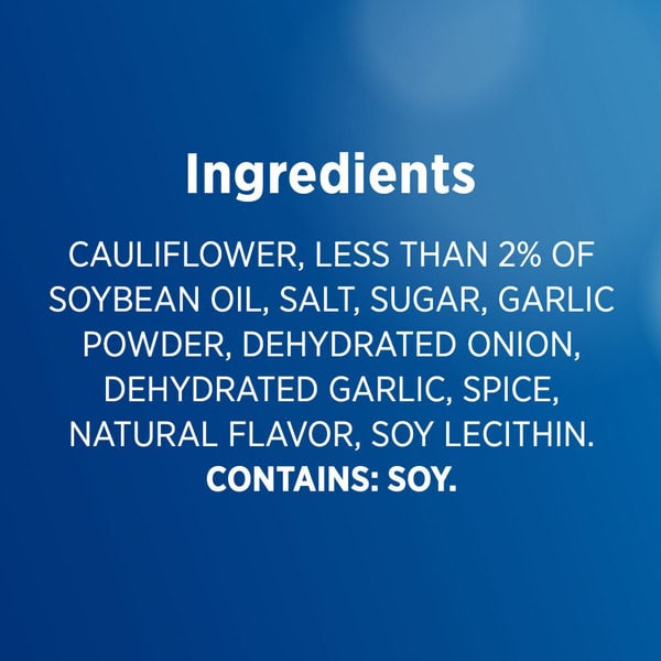 Cauliflower, Contains Less Than 2% Of: Soybean Oil, Salt, Sugar, Garlic Powder, Dehydrated Onion, Dehydrated Garlic, Spice, Natural Flavor, Soy Lecithin.