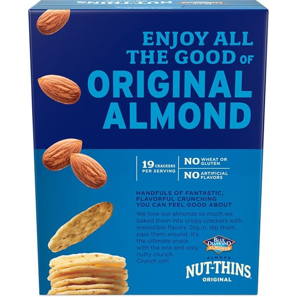 Gluten free. Nut-Thins Almond Nut & Rice Cracker Snacks 4.25 oz. Box: