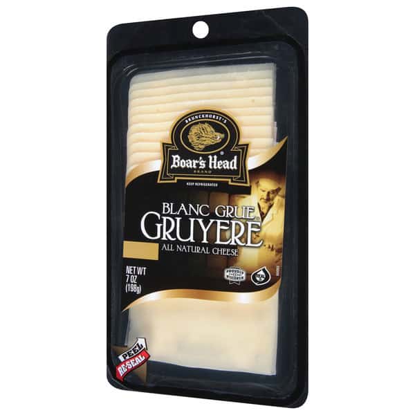 Prepared in copper vats and aged in the traditional Alpine manner, this earthy, aromatic cheese has a firm texture and lush flavor. Boar’s Head® Blanc Grue® Gruyere Cheese is made with milk from small family farms in Wisconsin.