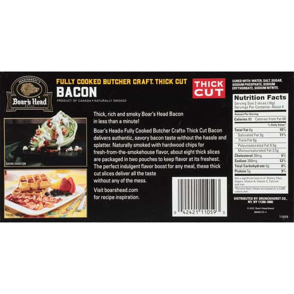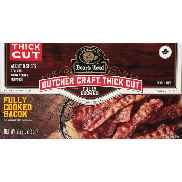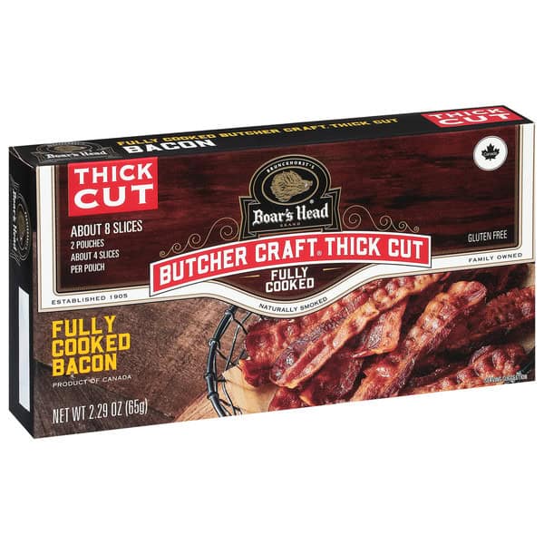 Crafted with top-quality pork belly, this bacon is smoked with hardwood chips and cooked to perfection. Boar’s Head® Thick Cut Naturally Smoked Bacon packs farm-fresh flavor into each Thick Cut slice.