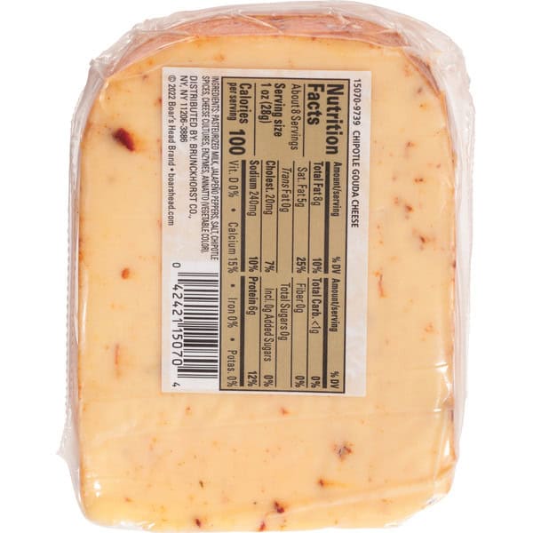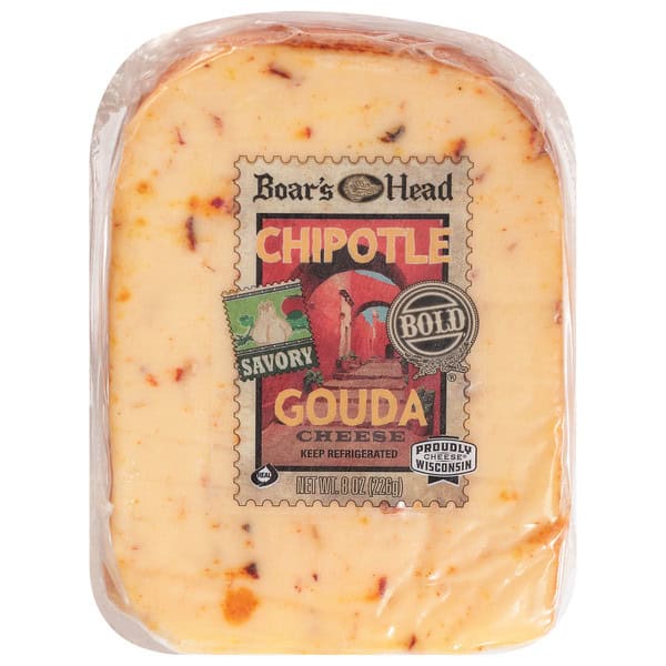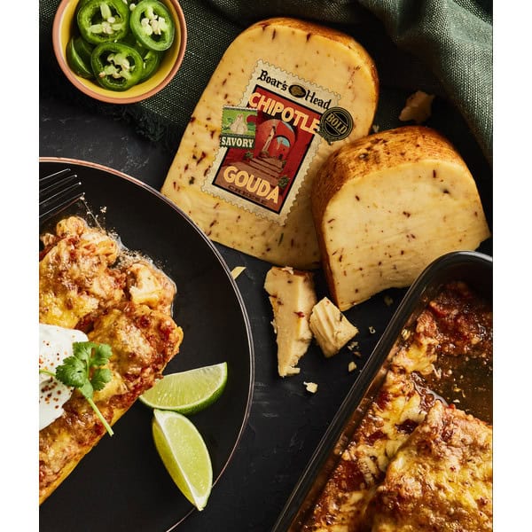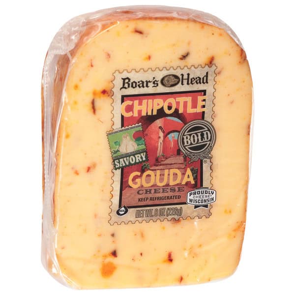 Reminiscent of the cuisine of coastal Veracruz, Mexico, where jalapeños are often cultivated and used in traditional fare, Boar’s Head Bold® Chipotle Gouda Cheese is where the New World meets the Old. Buttery Gouda cheese is infused with smoky chipotle spice and zesty peppers and then hand-rubbed with a rich chipotle powder for extra bold flavor.