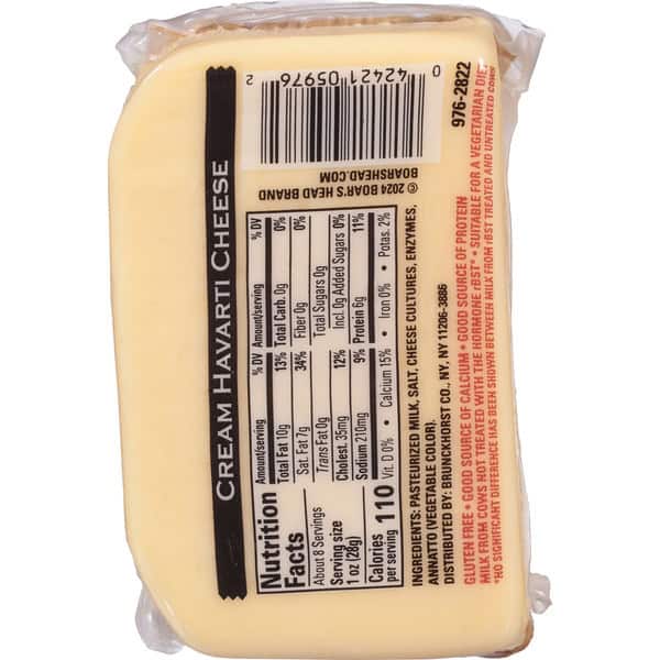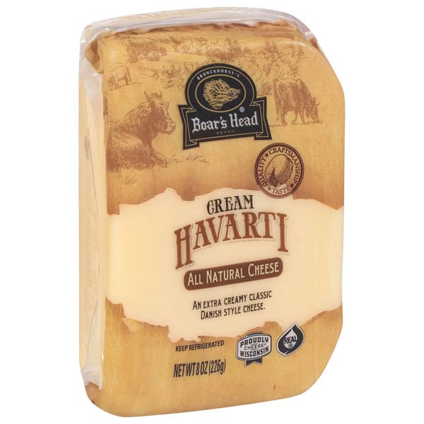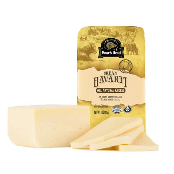 A double crème classic made in the traditional Danish style. Boar’s Head® Cream Havarti is a Wisconsin-made cheese that has an incredibly creamy texture with a rich buttery taste.