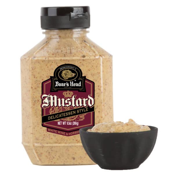 Made according to a traditional German recipe, this mustard is a spicy blend of hand-selected, freshly ground mustard seeds, white wine and horseradish. Boar’s Head® Deli Style Mustard is adds a bold, zesty flavor to any sandwich.