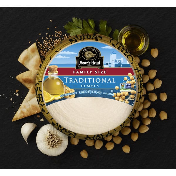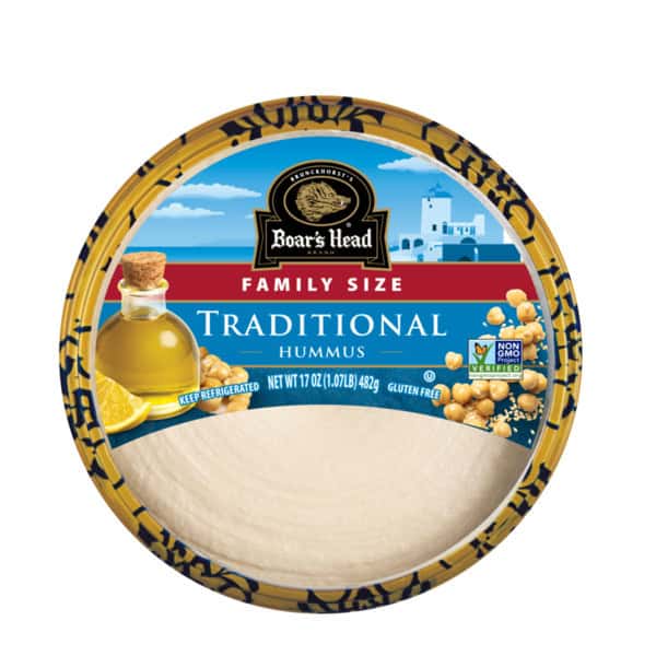 Boar’s Head Traditional Hummus is a delicious Mediterranean- inspired blend that is crafted with premium steamed chickpeas for a creamy and smooth texture. Sea salt, olive oil, tahini and a touch of garlic make this flavorful spread, snack or ingredient irresistible. Boar’s Head® Traditional Hummus is gluten-free, non-GMO and 100% delicious.