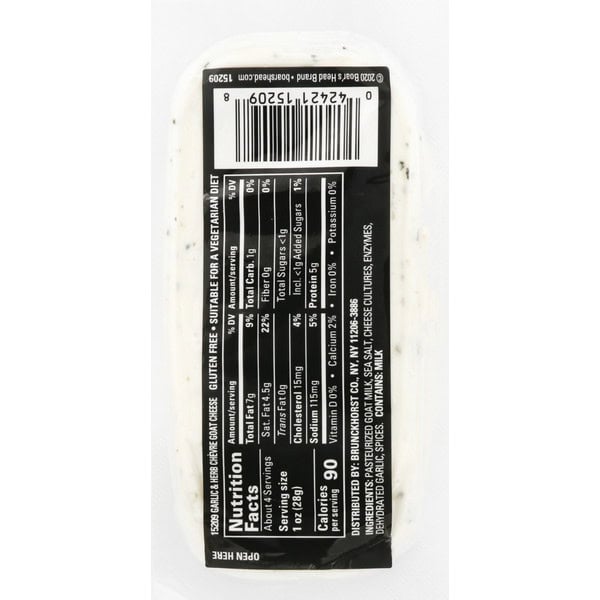 Fresh, soft and creamy cheese blended with a select variety of herbs and garlic, Boar’s Head® Garlic & Herb Chèvre Goat Cheese is a well-balanced savory, flavor. This herbaceous cheese offers a flavorful taste in every bite.