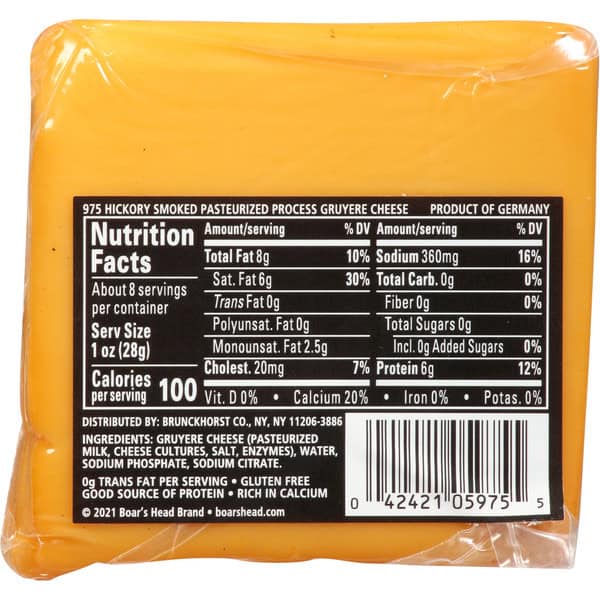 Imported from Germany, this classic Alpine style cheese has a nuanced, nutty flavor that is enhanced by a natural smoking process that imparts subtle woodsy notes. Boar’s Head® Hickory Smoked Gruyere Cheese has an exceptionally creamy texture.