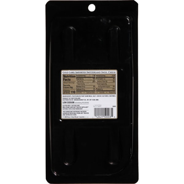 Made in Switzerland with Alpine milk under the watchful eye of Käse Meisters, this cheese has a nutty, slightly sweet flavor with earthy notes. Boar’s Head® Imported Switzerland Swissâ„¢ Cheese is aged more than 120 days to produce a bold taste, rich color and smooth texture.