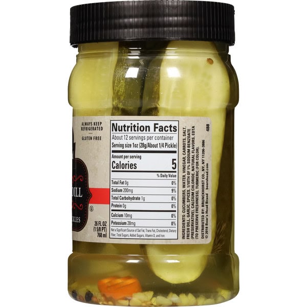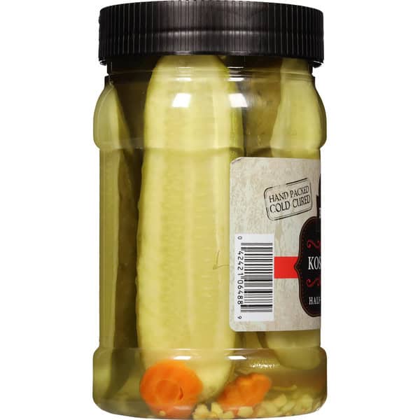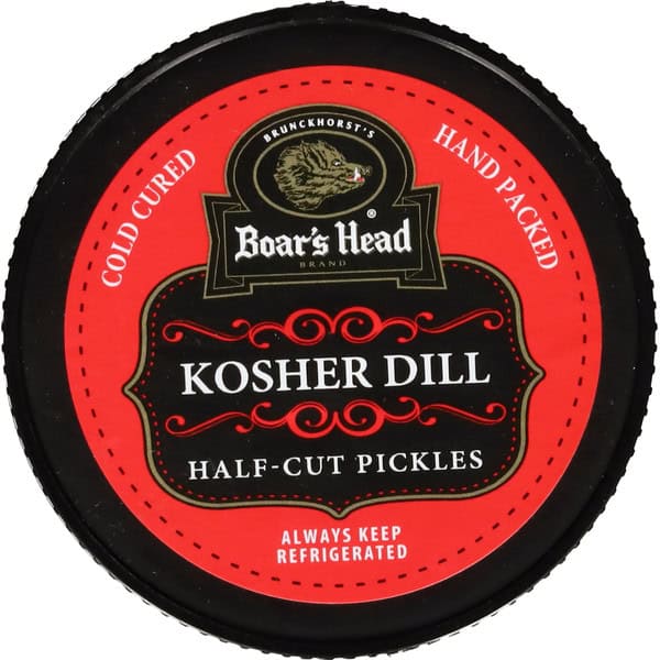 Crafted from the finest cucumbers and packed by hand into a zesty vinegar brine, these crunchy pickles are cold cured in the jar for a distinctive snap. Boar’s Head® Kosher Dill Pickles achieve the perfect balance between sweet and sour.