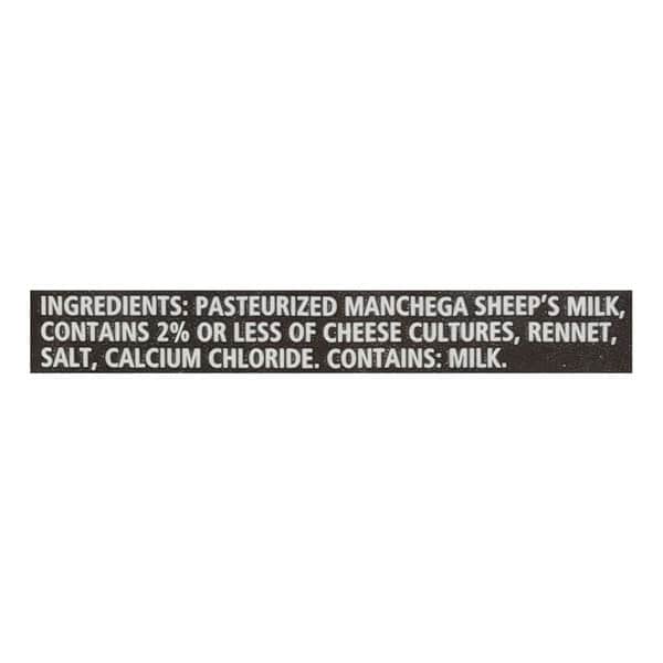 Pasteurized Manchega Sheep’s Milk, Contains 2% Or Less Of Cheese Cultures, Rennet, Salt, Calcium Chloride