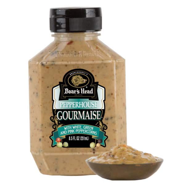 Crafted with creamy mayonnaise and deli style mustard, this spread is spiced with a carefully selected blend of black, white, pink and green peppercorns. Boar’s Head® Pepperhouse Gourmaise® has a complex taste that complements bold flavors.