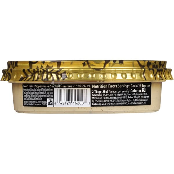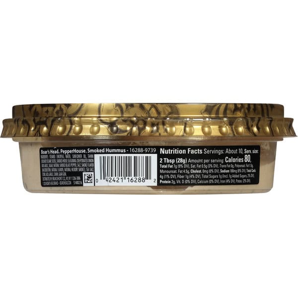 Crafted with premium steamed chickpeas, smoked black pepper, and a proprietary house seasoning blend, Boar’s Head® PepperHouse® Smoked Hummus delivers a well-balanced pepper-smoke flavor combination for a deliciously unique, creamy and smooth hummus, perfect for pretzels, pita bread, and more.