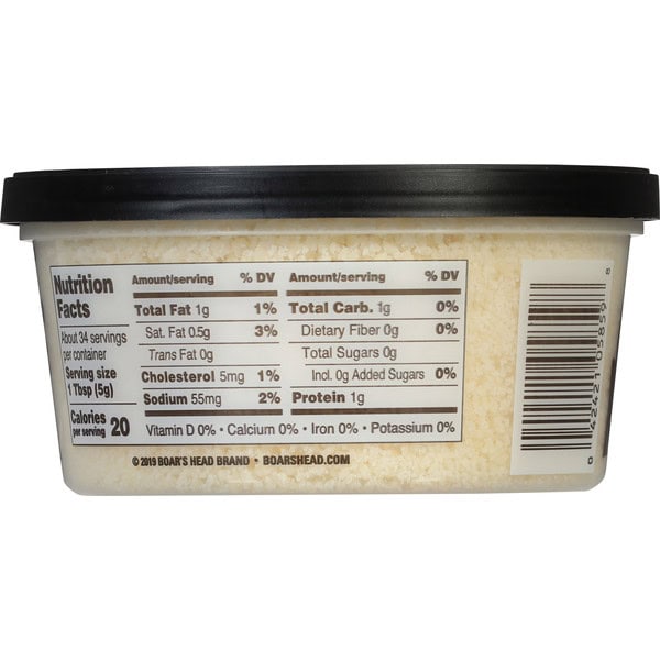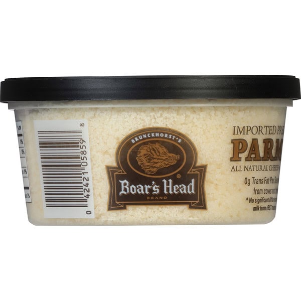 Sharp with fruity, nutty notes, this cheese has a full-bodied, complex flavor. Boar’s Head® Grated Parmesan Cheese is aged for more than 10 months to fully develop the flavor and granular texture and grated for convenience.