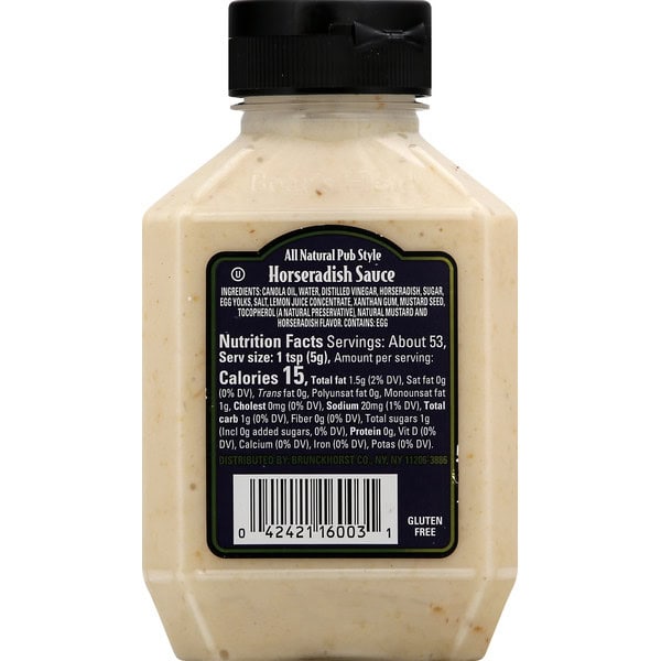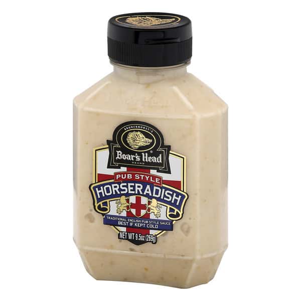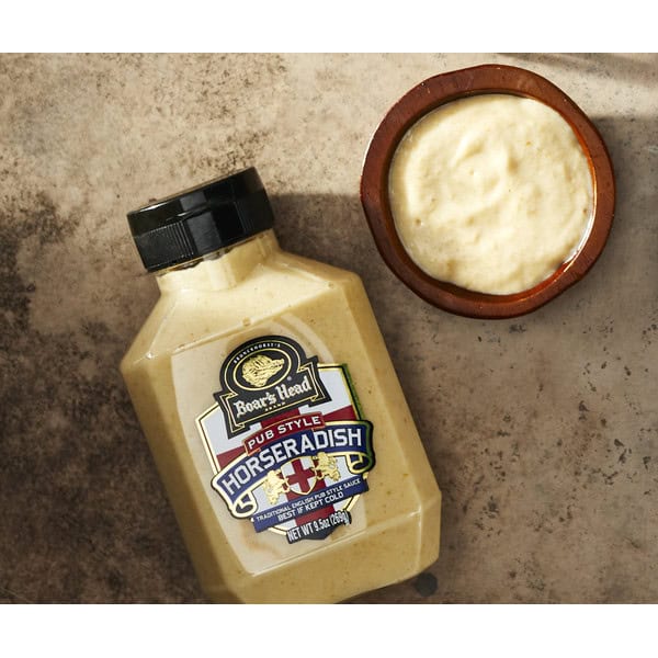 A smooth blend of finely ground white horseradish, vinegar, spices and mayonnaise, this sauce balances piquancy and creaminess. Boar’s Head® Pub Style Horseradish Sauce is a zesty take on a classic pub favorite.