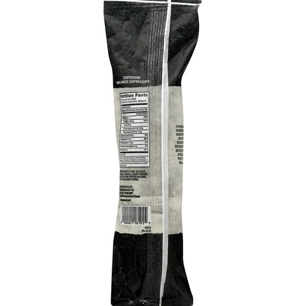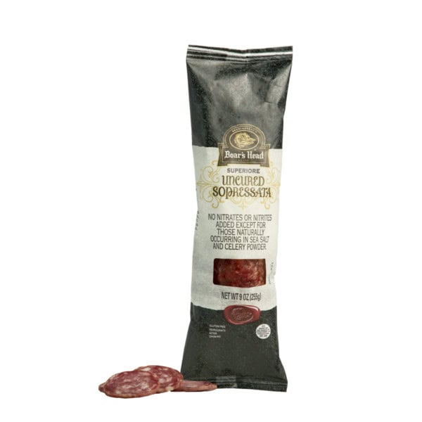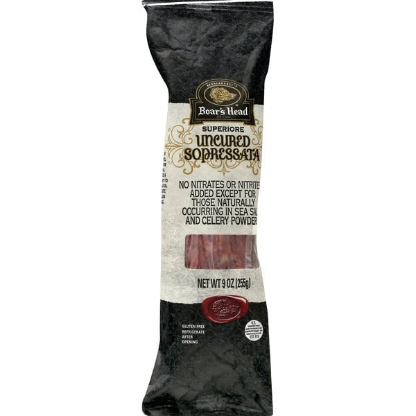 A unique blend of coarsely chopped, hand-trimmed pork and traditional seasonings and naturally aged to achieve peak flavor. Boar’s Head Superiore Uncured Sopressata is a bold, rich taste that is a timeless Italian classic.