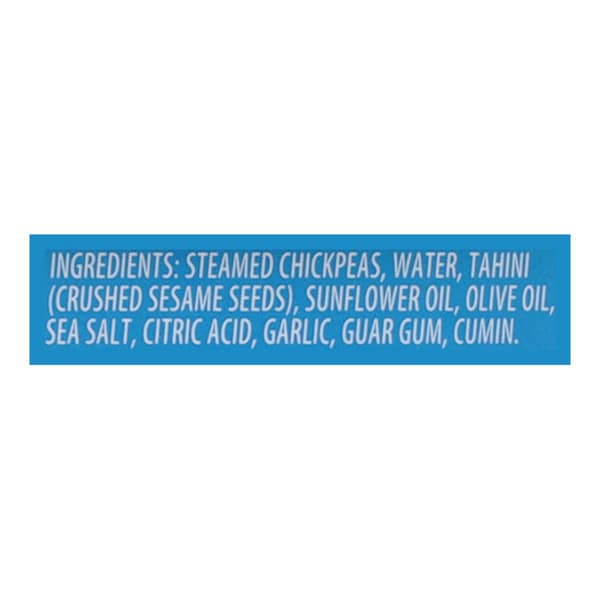 Steamed Chickpeas, Water, Sunflower Oil, Olive Oil, Sesame Tahini (pure Crushed Sesame Seeds), Sea Salt, Citric Acid, Garlic, Guar Gum, Cumin
